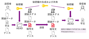 認証付き暗号(Authenticated Encryption with Associated Data)は秘匿性と完全性を両立するように設計された暗号方式となります。