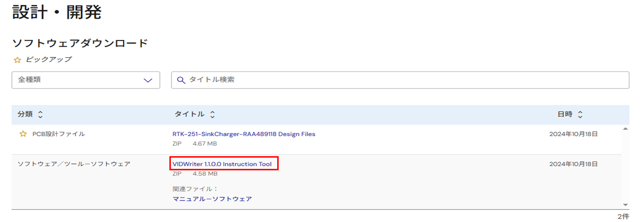 評価ボードごとにVID WriterのVersionが異なるため、該当の評価ボードのページから本手順を実施する必要があります。