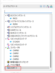 3. 「端子」タブをクリックすると以下画面が出てきますので、「I/Oポート」をクリックします。