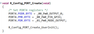 先ほどの工程で端子の設定は完了しましたので、ここではLEDを光らせるため、「P40」が「出力」であることをMCUに認識させます。