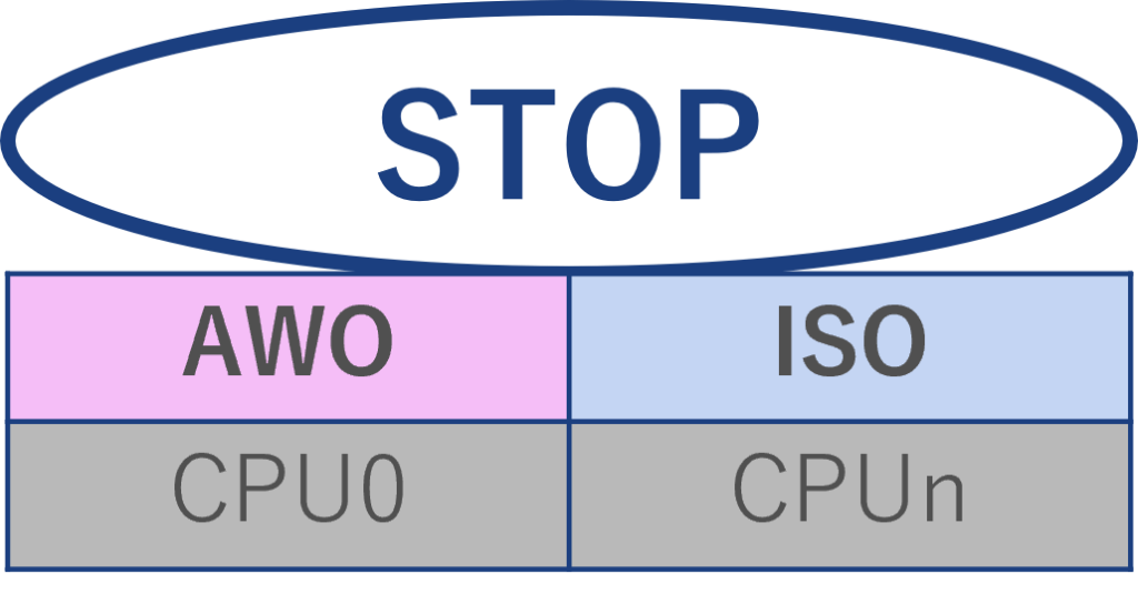 各モードの違いをISO領域への電源供給、CPUの動作の観点でまとめてみました。