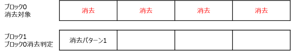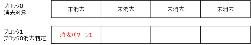 ブロック0を消去し、ブロック1でブロック0のブランク状態を管理する場合、消去後のデータイメージは以下となります。