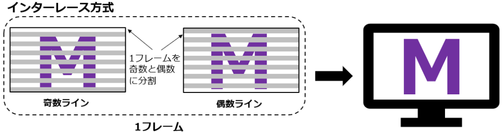 ※デインターレース:インターレース方式の動画をプログレッシブ方式に変換すること