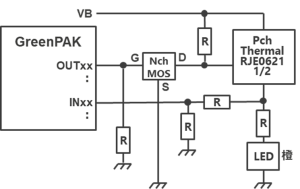 ・Fault LEDはGreenPAKのオープンドレイン出力で駆動
