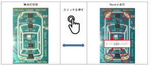 電源供給状態でHazard 点灯スイッチを操作すると、LED 表示箇所のLED が点灯します