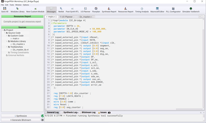をご参照下さい。ここからは、ForgeFPGAの開発環境が正常にセットアップされていることを前提として解説を進めていきます。