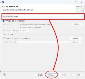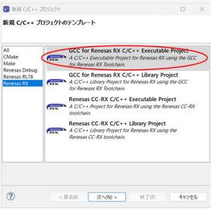 「Renesas RX」→「GCC for Renesas RX C/C++ Executable Project」