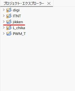 すると、以下のようにプロジェクトのなか「jikken」が出てきたので、これをもとにコードを書き込む形になります。