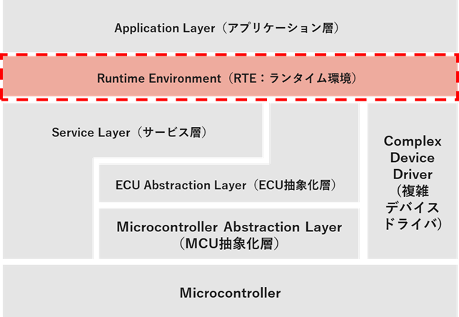 必要な場合に実装されます。 - Application Layerは車の制御を行い、Runtime EnvironmentはAPPとBSW間の通信を担当しています。