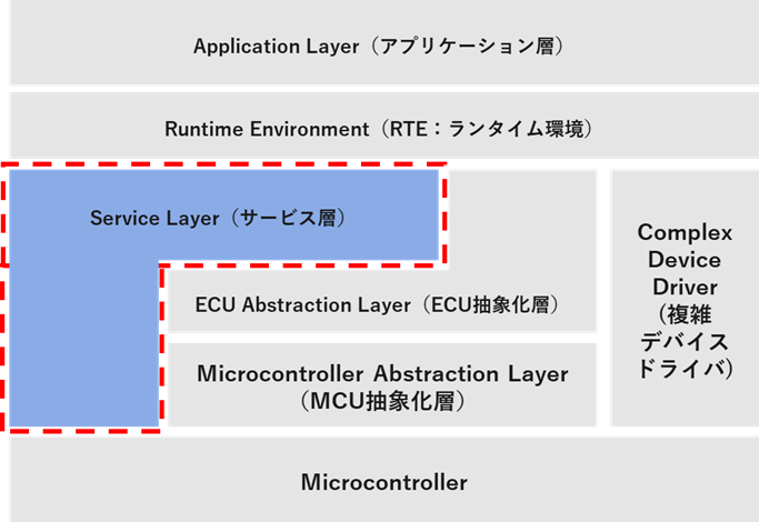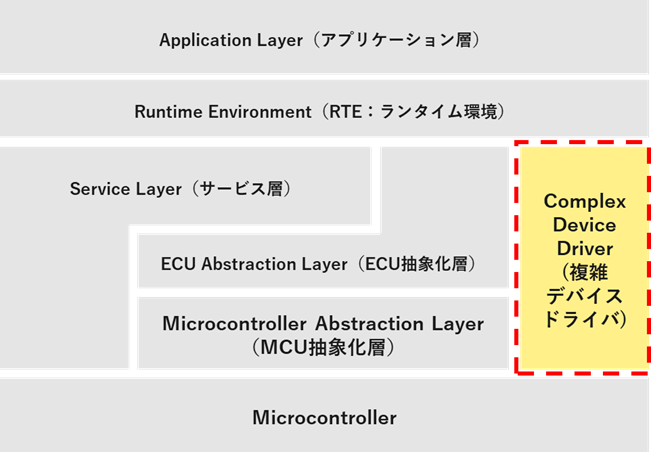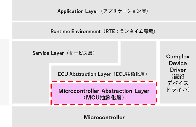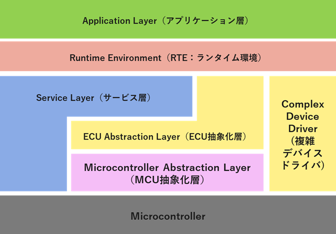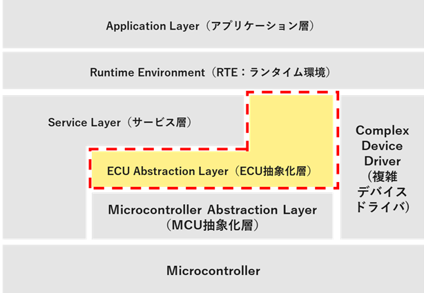 (MCAL/ECU Abstraction Layer/Service Layer/Complex Driver)から構成されています。