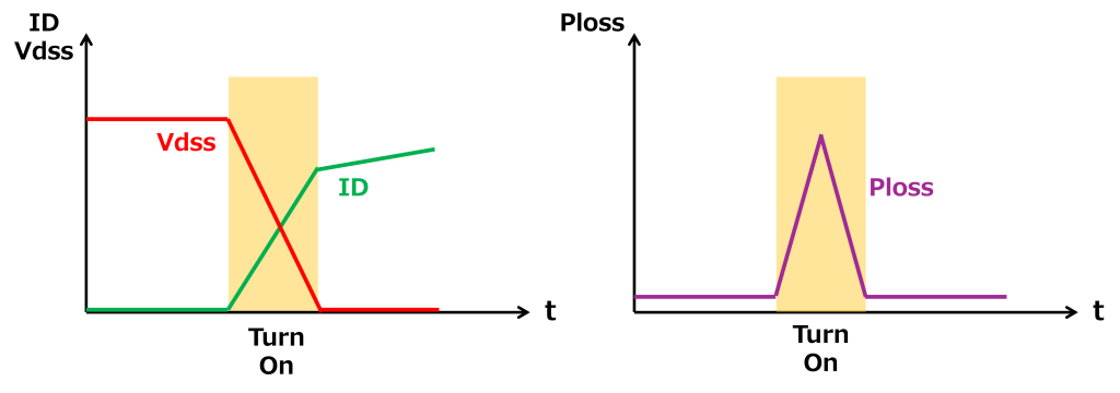 Fig.2 (左)スイッチング時のId,Vd波形イメージ (右)損失波形