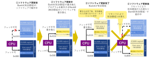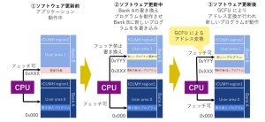 ③「ソフトウェア更新後」では、GCFU(後述)によりアドレス変換が行われ新しいログラムが動作します。