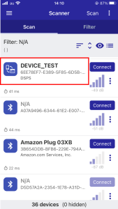 - 「Renesas SmartBond」などBTデバイスをスキャンできるソフトでスキャンしてみます。
