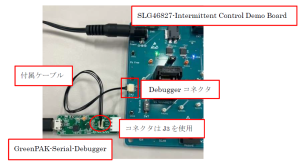 ・DebuggerコネクタにGreenPAK Serial Debuggerをケーブル経由で接続することで、