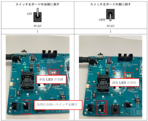 ・MCU動作時にLED4(青)が点灯しSCAN SWに応じたLEDを点灯/点滅