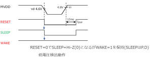 ・RESET=0を出力後MCUのリセットによりSLEEP=0となるが、 WAKE=1を保持