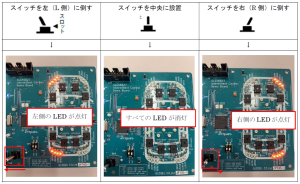 ・Power SWにて回路へ電源の電源投入(ONでLED(緑)点灯)