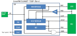 GreenPAKではMCU間欠動作の制御に加え、Power on reset、低電圧検出、WDT機能を実装しています。