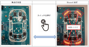 Hazard SWでは前後左右のLED(橙)を点滅、それぞれSW OFFで消灯