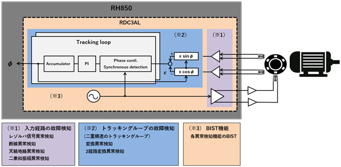 RDC内蔵MCUでは自己診断機能や冗長設計を取り入れることが可能。