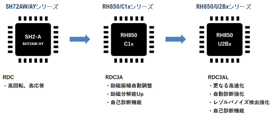 ・SH72AW/AY : モーター制御に最適化された高集積MCUで、はじめてRDCを搭載