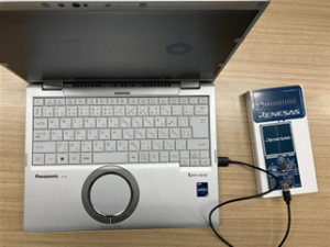 USBケーブルを用いてPCと評価ボードを接続したらハード側の準備は完了です。