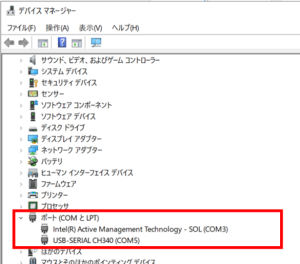 まずはツールに評価ボードを認識させるため、COMポートの選択を行います。各COMポートに割り当てられた機能はPCのデバイスマネージャー→ポート(COMとLPT)から確認できます。