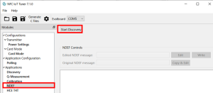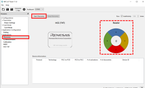 ここでDiscovery→Start Discoveryと選択すると、ポーリング状態に入りNFCタグの検出が可能になります。