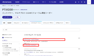 NFC IoT Tunerはルネサスwebサイトから無償でダウンロード可能です。PTX105Rの製品ページ内ソフトウェア/ツールからリンクを選択すると、zipファイルがダウンロードされます。また、マニュアル-ソフトウェアを選択すると、NFC IoT Tunerの使用方法が記載された英語版のユーザーマニュアルを参照することができます。