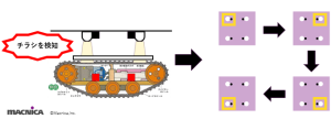 →カラーセンサを4つ使用し、RGB値からチラシと郵便物を判定します