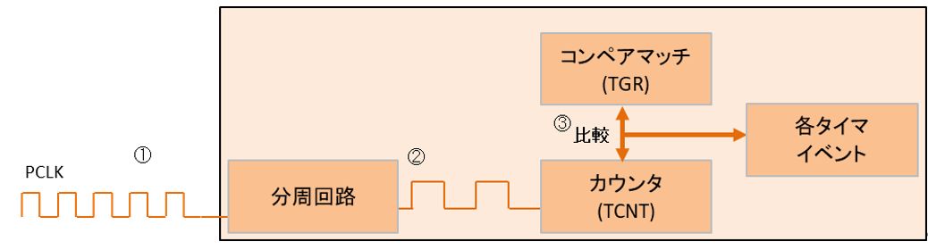 「クロックをカウントし、設定値と一致したらなにかしらフラグを立てる単純なタイマ」です。
