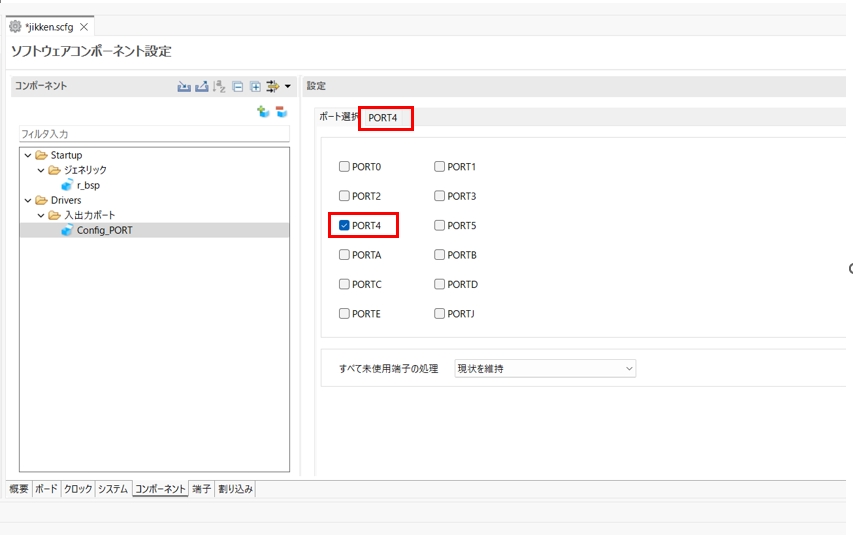 7.画面左側の「プロジェクト・エクスプローラー」の「src」→「smc_gen」→「Config_PORT」のフォルダに