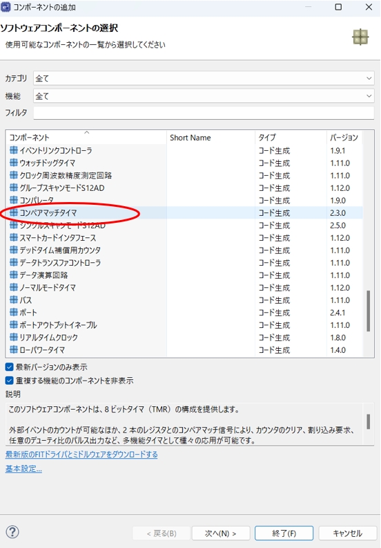3.以下の画面が表示されますので、「コンペアマッチタイマ」を選択します。