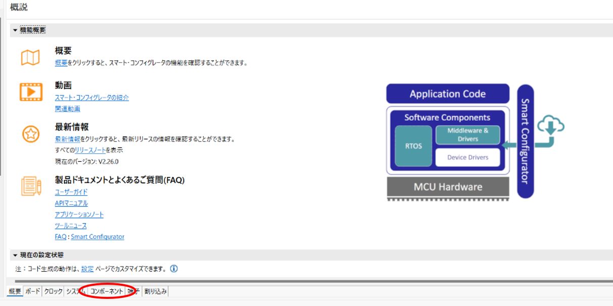 2.ファイルを開くと以下の画面が表示されますので、画面下側赤枠の「コンポーネント」タブをクリックします。
