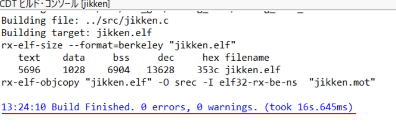 - 画面左側の「プロジェクト・エクスプローラー」の「src」→「jikken.c」