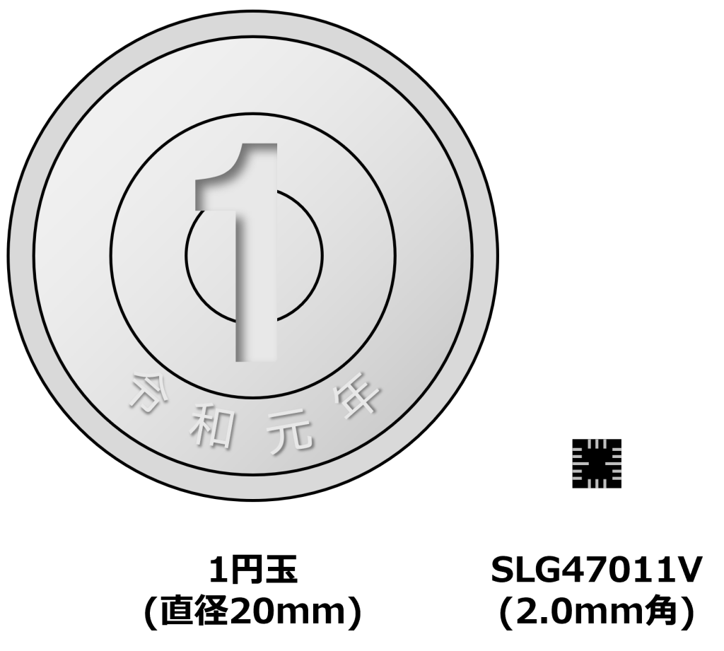 SLG47011シリーズは1.8V, 3.3V Logic対応で2.0 x 2.0 mmと非常に小さいことが特徴です。