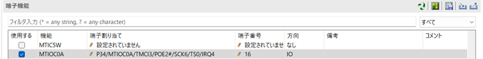 今回の設定では、16番ピン(P34/MTIOC0A…)に正しく割り当てられていることが確認できました。