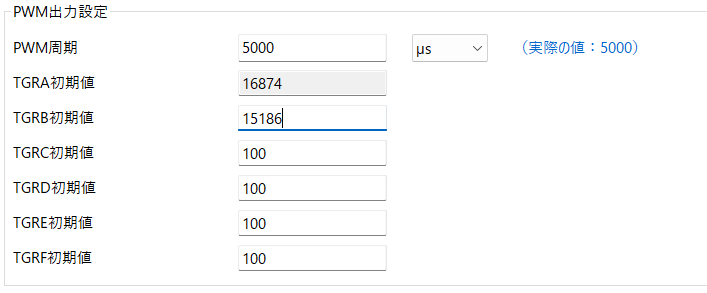 PWM信号の周期を設定する項目です。今回は5,000μsと設定しました。