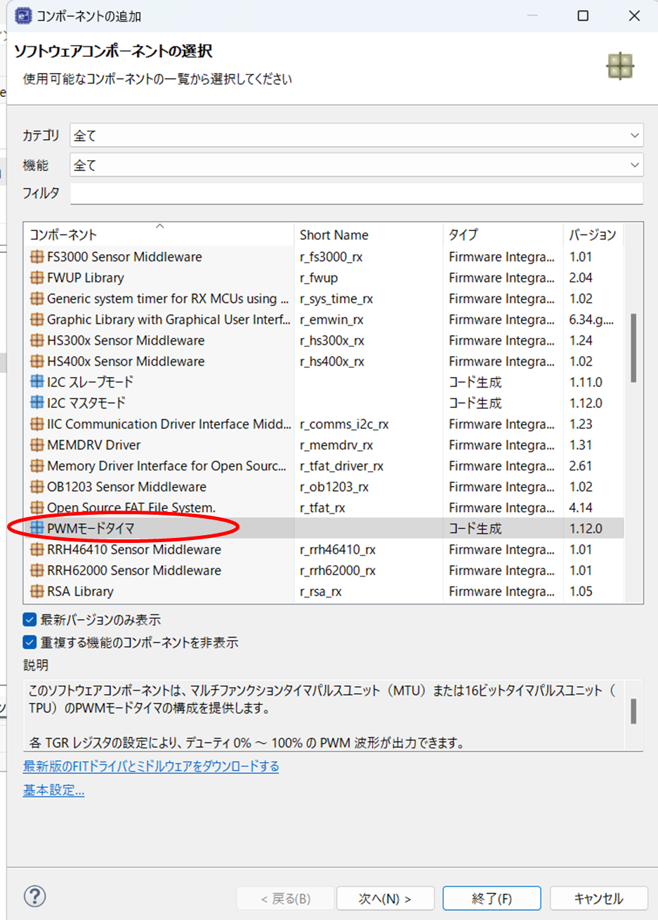3. 以下の画面が表示されますので、「PWMモードタイマ」を選択します。