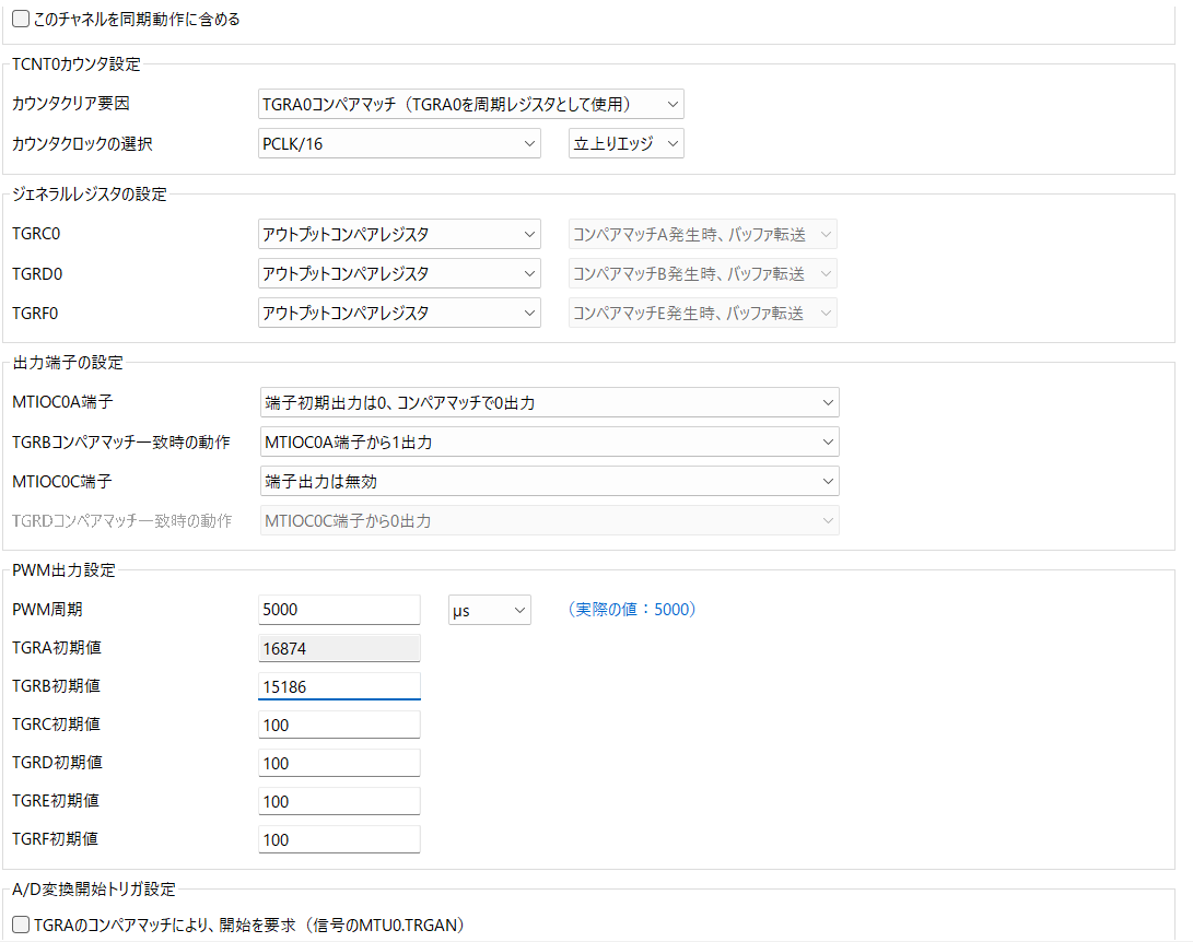 今回は TGRA0 を「周期(終わり)」を決めるために使用し、