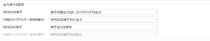 (*)MTIOC0C端子 TGRDコンペアマッチ一致時の動作については、今回は使用しないので説明を省きます。