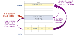 このように、テーブル参照方式では発生した要因に応じてテーブルにアドレスを書き込む方式で、割り込み機構の拡張性が非常に高い方式となっております。