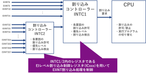 こうした一連の汎用的な割り込みが割り込みコントローラーのEIINTで制御されます。