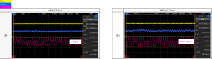 こちらはリプル電流確認の結果となります。インダクタ部に直に電流プローブを挿入し測定しました。