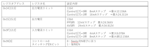 単純に電源起動させるだけであれば、最低動作電圧に注意して、以下レジスタにて出力電圧設定、入出力電流リミット、スイッチングENを設定するだけで簡単に出力を確認することが出来ます。